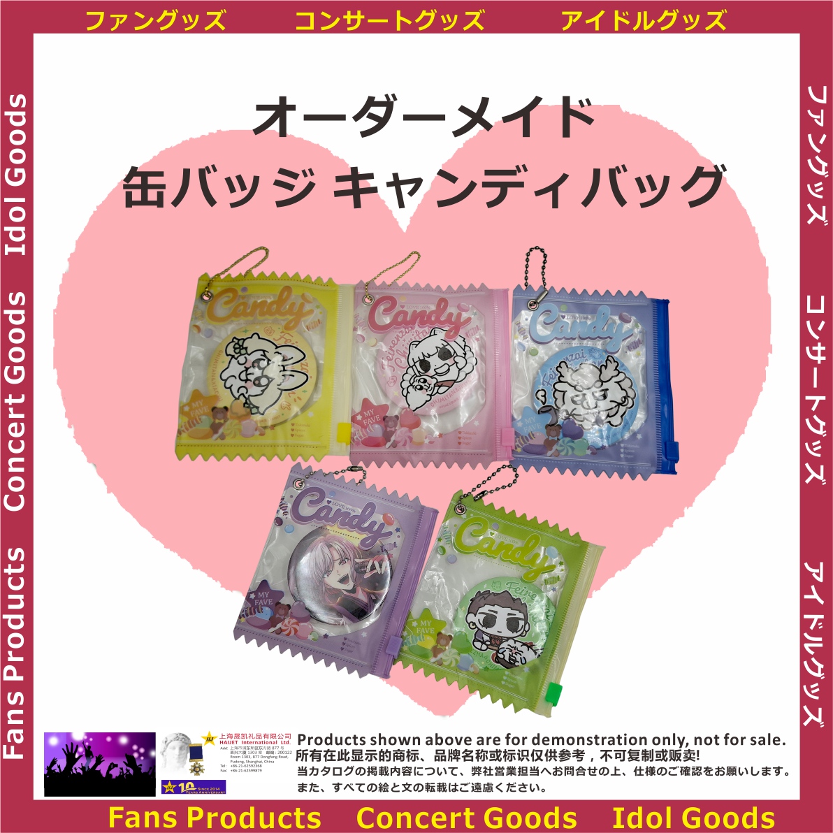 <h2>こちらは現在日本で流行している商品です。お気に入りの缶バッジをPVC製のキャンディバッグに入れて、バッグなどに飾って楽しむことができます。主な仕様は以下の通りです。</h2>