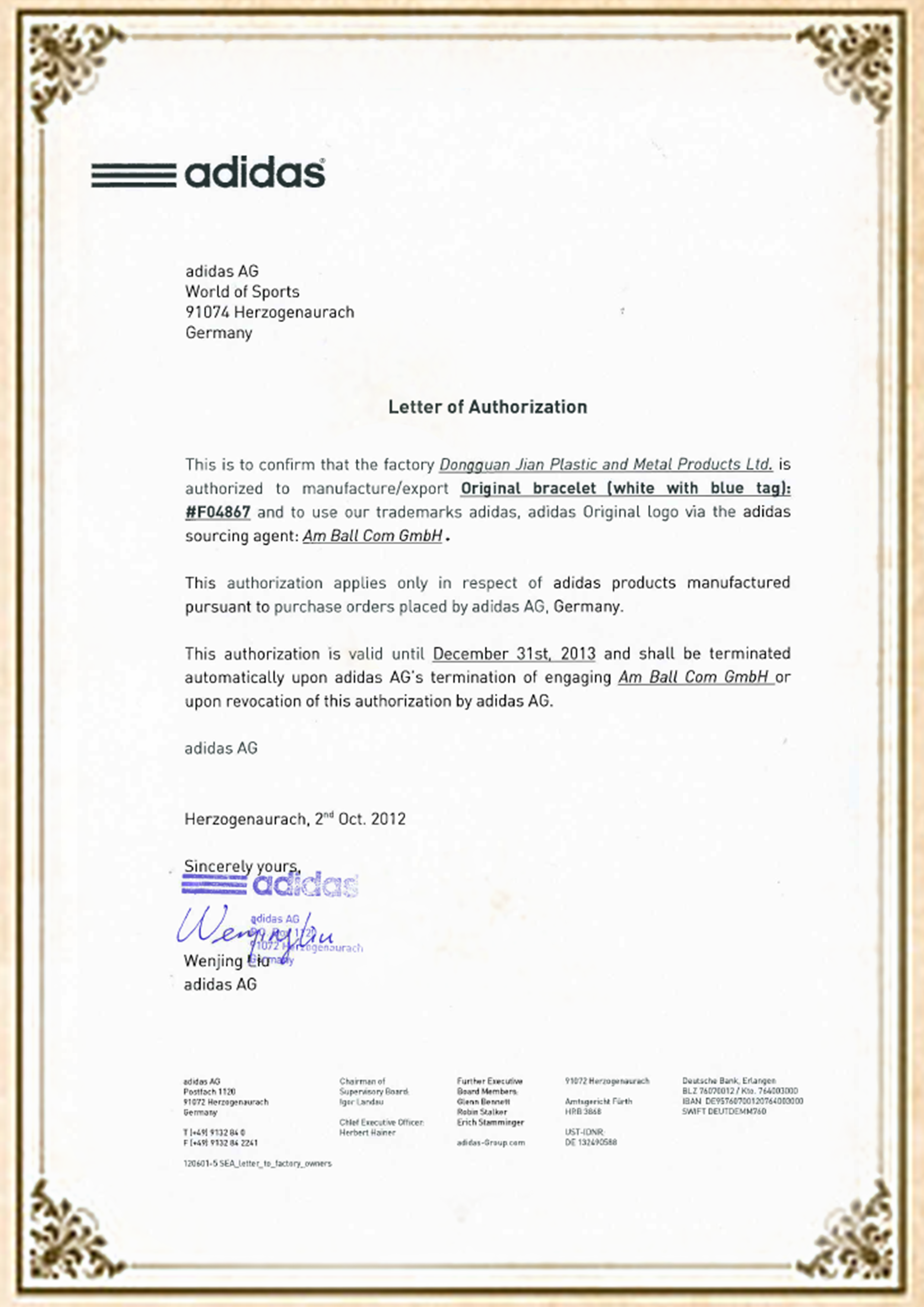 認定書
