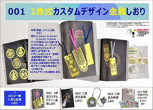 サイズや形はいろいろ選べます。ロゴや文字は、ハーフエッチング(凹み)またはフルエッチング(透かし)が可能です。<br />