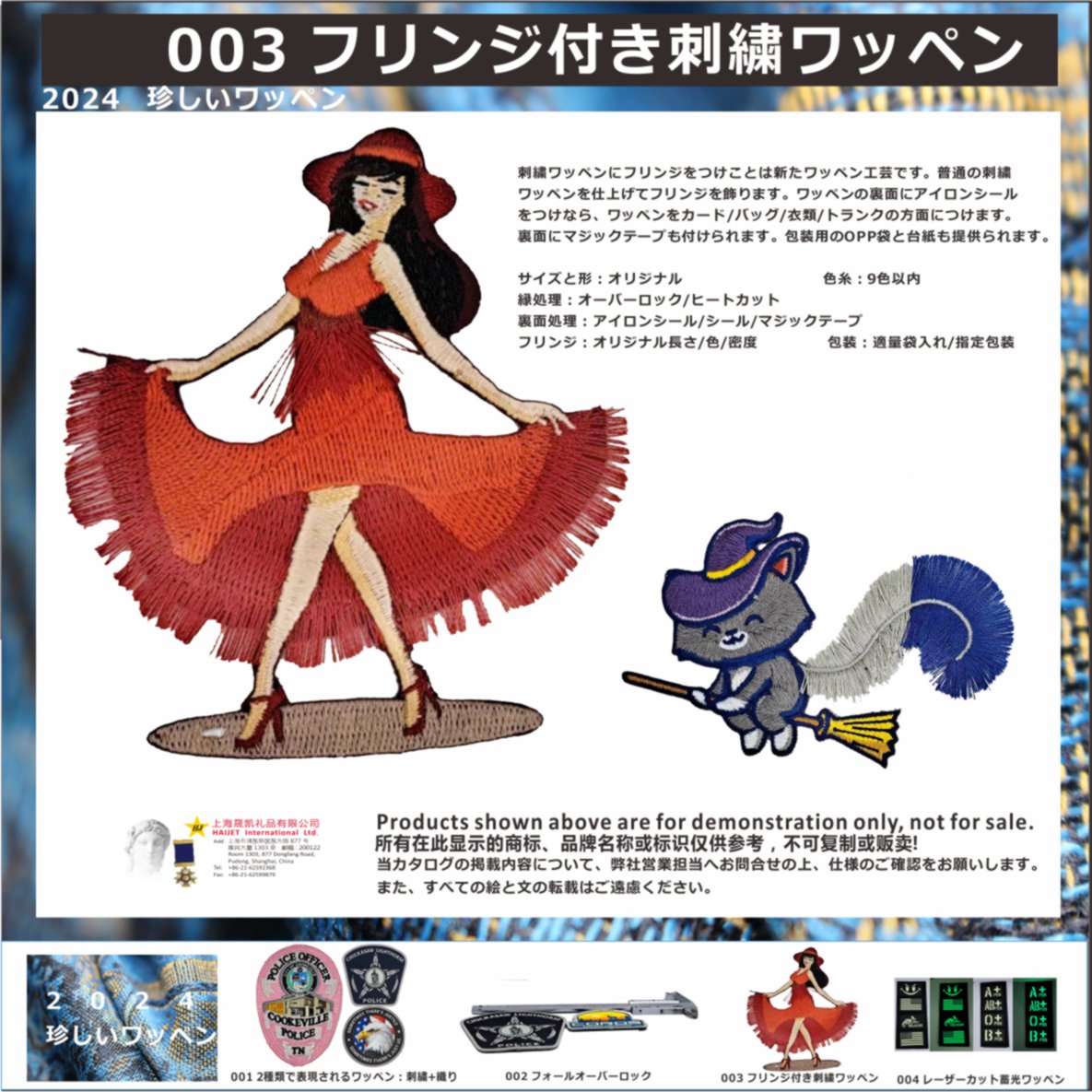 <p style="text-align:justify"><span style="font-size:10.5pt"><span style="font-family:Calibri,"sans-serif""><span lang="JA" style="font-family:"Meiryo","sans-serif"">刺繍ワッペンにフリンジをつけことは新たワッペン工芸です。普通の刺繍ワッペンを仕上げてフリンジを飾ります。ワッペンの裏面にアイロンシールをつけなら、ワッペンをカード</span><span lang="EN-US" style="font-family:"Meiryo","sans-serif"">/</span><span lang="JA" style="font-family:"Meiryo","sans-serif"">バッグ</span><span lang="EN-US" style="font-family:"Meiryo","sans-serif"">/</span><span lang="JA" style="font-family:"Meiryo","sans-serif"">衣類</span><span lang="EN-US" style="font-family:"Meiryo","sans-serif"">/</span><span lang="JA" style="font-family:"Meiryo","sans-serif"">トランクの方面につけます。裏面にマジックテープも付けられます。包装用の</span><span lang="EN-US" style="font-family:"Meiryo","sans-serif"">OPP</span><span lang="JA" style="font-family:"Meiryo","sans-serif"">袋と台紙も提供られます。</span></span></span></p>