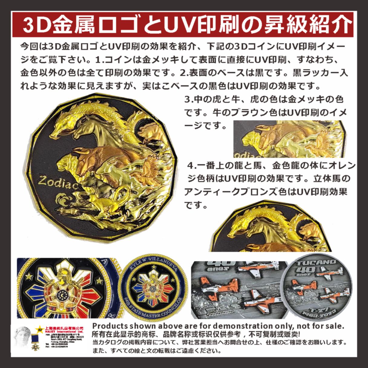 <h2>今回は3D金属ロゴとUV印刷の効果を紹介、下記の3DコインにUV印刷イメージをご覧下さい。</h2>
