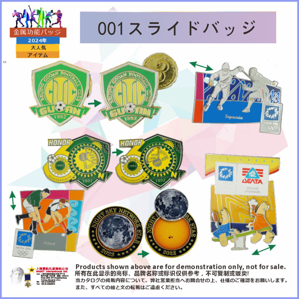 -上バッジは内蔵の金属レールで滑ります;<br />