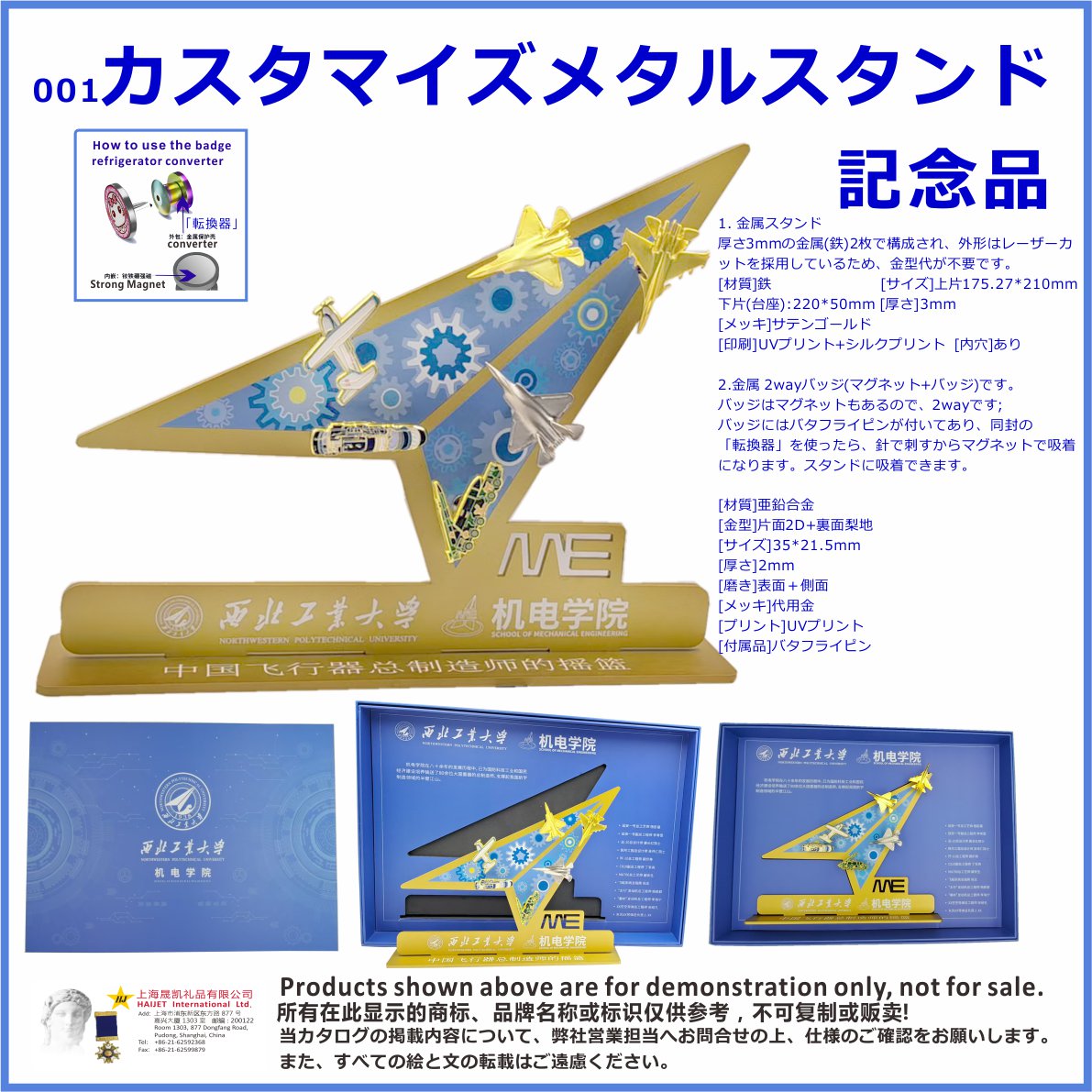 提携例004:西北工業大学机電学院金属賞座記念ギフトセット-【中国飛行机総製造師のゆりかご】です。<br />