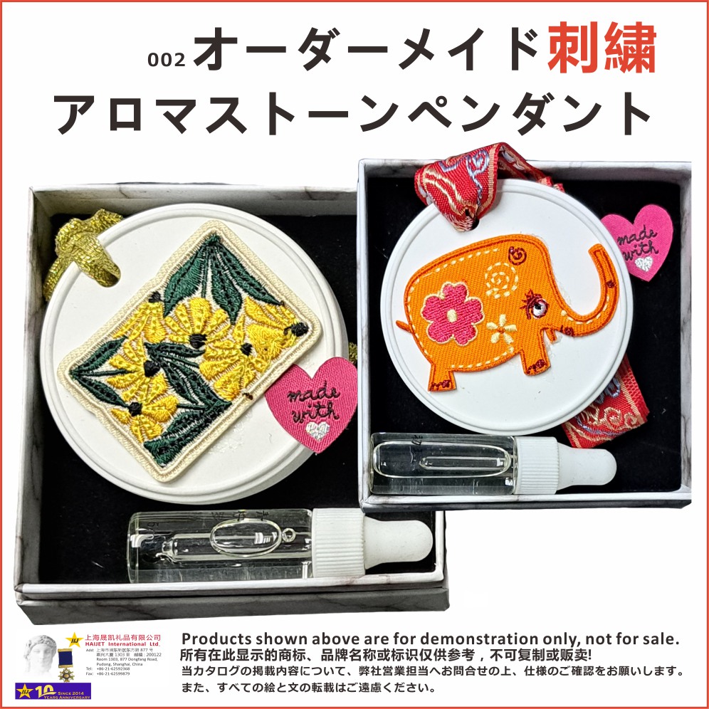 2. アロマストーンは弊社既存の固定サイズのアロマストーンベースを使用でき、サイズは直径65mm、厚さ10mmです。刺繍サイズは直径63mmの範囲内にする必要があります。もちろん、アロマストーンのサイズもお客様のデザインに基づいて生産可能です。<br />