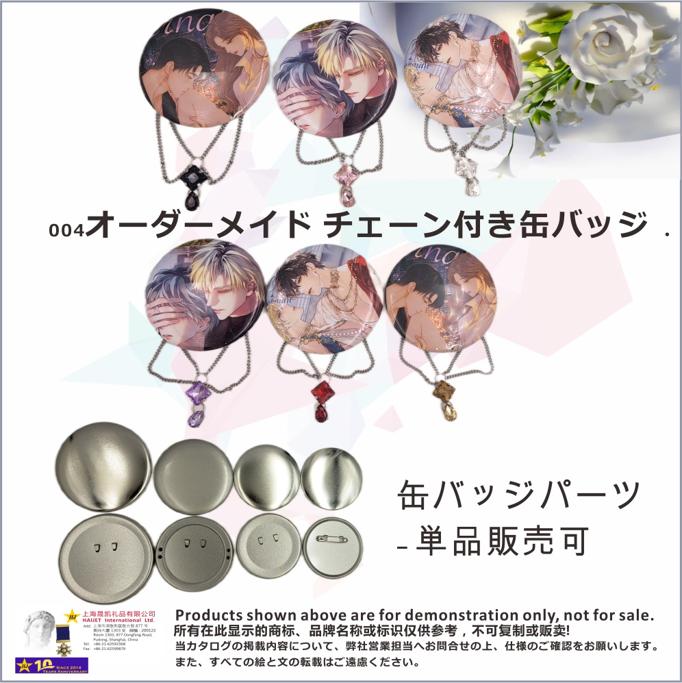 <h2>004オーダーメイド チェーン付き缶バッジ .缶バッジパーツ – 単品販売可<br />